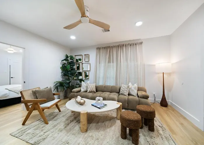 Nestled in the vibrant heart of Houston, Mediterranean Villa #5 At East Downtown is a stunning retreat that combines comfort with contemporary elegance. Located just 7 km from the renowned Ensemble/HCC and in proximity to other cultural landmarks, this villa provides an ideal base for both leisure and business travelers. The unique architectural design captures the essence of Mediterranean elegance, transporting guests to a serene oasis while being steps away from the dynamic city life. Perfectly situated near essential transportation links, Mediterranean Villa #5 At East Downtown grants easy access to Houston's bustling urban attractions. Whether you're visiting for a cultural exploration or a business endeavor, this villa serves as an exceptional home away from home, uniting luxury with an unparalleled location for an unforgettable experience.